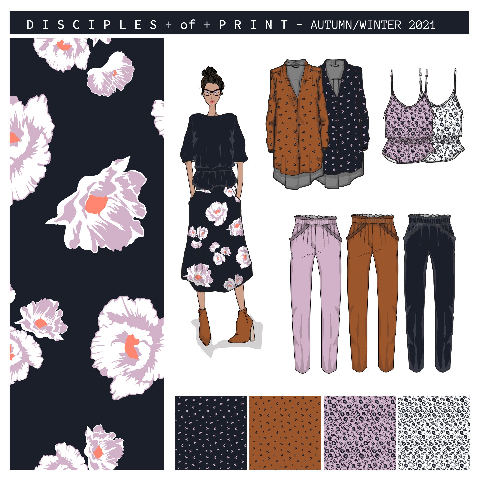 Here at Disciples of Print our design services include fashion flat sketches, graded specification sheets and factory ready tech packs for garment sampling. We also create production ready digital surface prints for Fashion, Interiors, Homewares and Stationary. As a fully integrated design studio, let us help you develop your clothing brand or creative project.